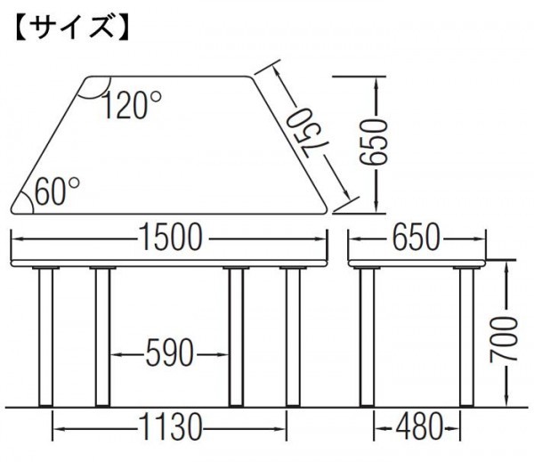 | 仕様 | 天板タイプ:台形 耐荷重:100kg(均等に荷重をかけた場合) 組立品 梱包:2個口 |