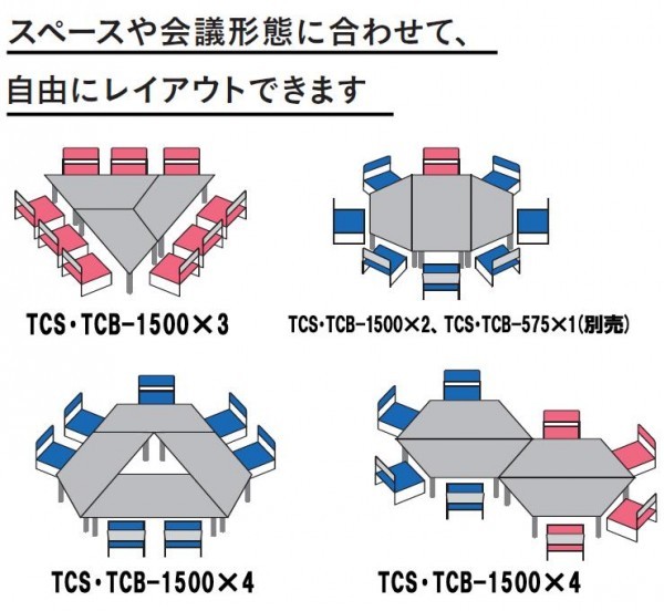 スペースや会議形態に合わせて、自由にレイアウトできます。 |