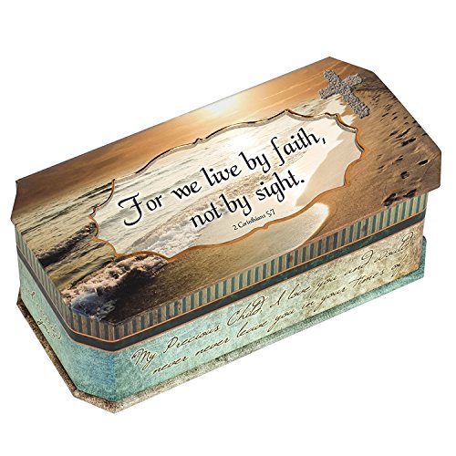 2 Corinthians 5:7 For We Live by Faith, Not by Sight Footprints in the Sand Design Jewelry Music Box - Plays Song How Great Thou Art