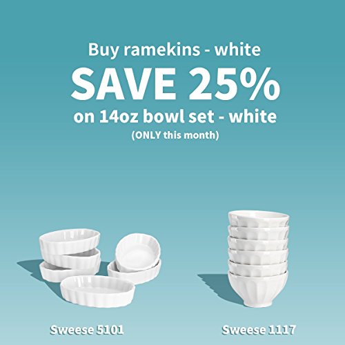 GOOD SIZE FOR VARIOUS FOOD - Sweese ramekins are perfect for creme brulee, individual side dishes, quiche, baked mac and cheese, poached or shirred eggs, and serving dipping sauces. And they are just the right size for kids little hands which make them easy to hold.