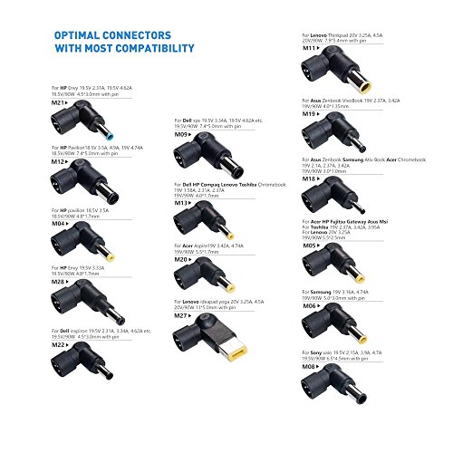 Chargesmart Technology: Powerful Smart Voltage Current Management Technoloy- Choose the right connector, it will adjust a fitting Voltage for your laptop. Easy and Safe.