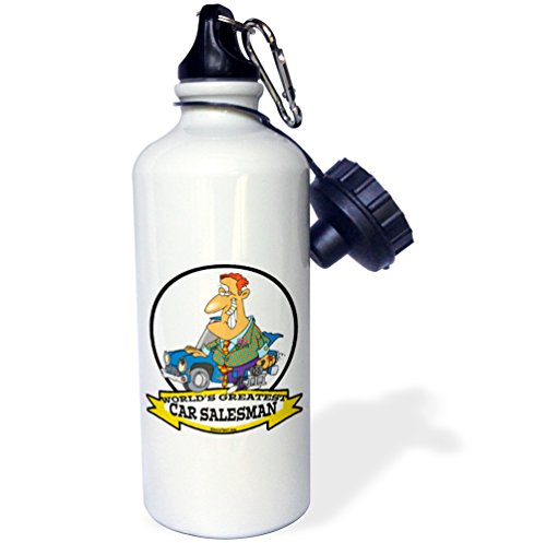 3dRose wb_103018_1 "Funny Worlds Greatest Car Salesman II Occupation Job Cartoon" Sports Water Bottle, 21 oz, White
