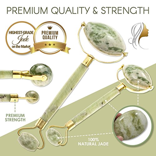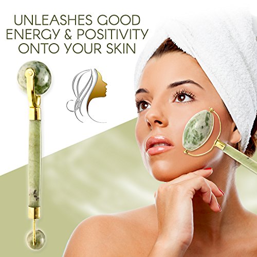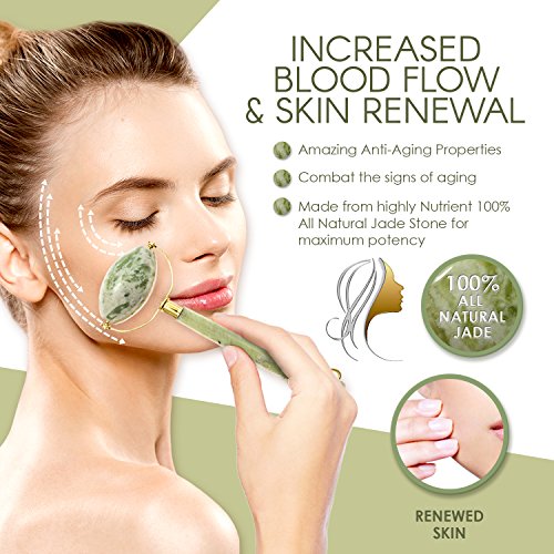 | AMAZING ANTI-AGING PROPERTIES | ► Our 100% All Natural Jade Face Roller Massager is packed with nutrients that help improve complexion, fight the effects of aging, revitalize your skin, reduce pigmentation, and helps fight acne, along with detoxifying the body. Besides doing wonders for your skin, this double-sided Jade Roller helps calm and relax your muscles in addition to helping reduce stress so that you look and feel amazing!