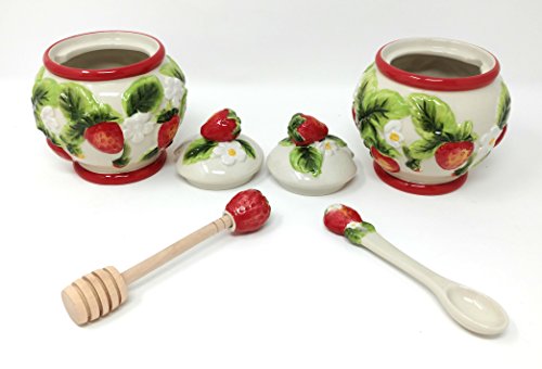 Studio : Temp-tations Publisher : Temp-tations Product Description Sweeten up your breakfast with this Temp-tations figural fruit jam and honey jar set. Vibrant colors burst from these hand-painted jars' figural fruit designs to brighten up your morning. A wooden honey dipper and ceramic spoon make is simple to dole out your favorite sweeteners. From Temp-tations(R) Ovenware. 0