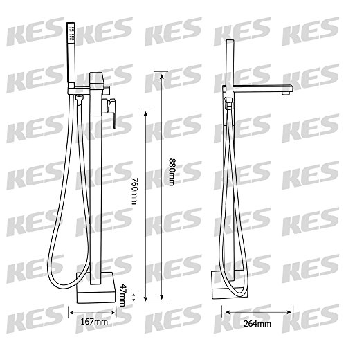KES Brass Freestanding Tub Filler Faucet with Brass Hand Shower Head Floor Mount Chrome, L5805-P (Chrome)