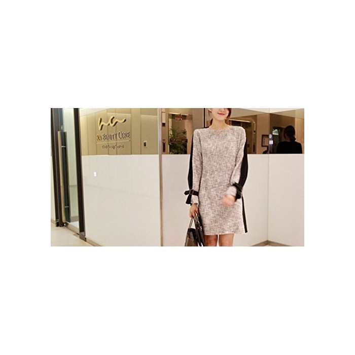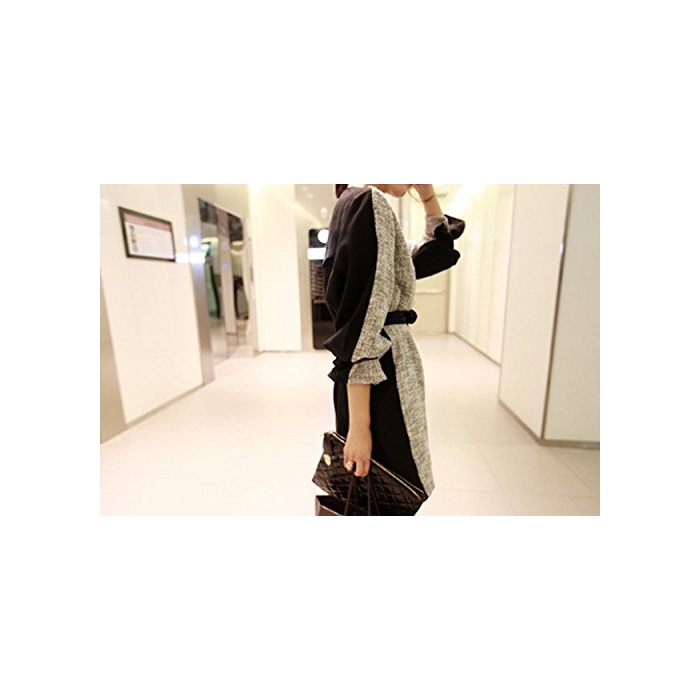 원본상품명: ange select 落ち着きのある 大人 女性 に バイカラ ワンピス 長袖 ウエスト リボン 引き締め おしゃれ カジュアル お出かけ スタイル