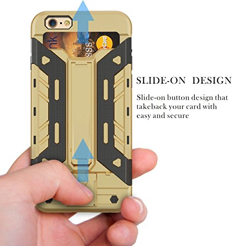iPhone 6S Card Case,LITOYA Card Holder Heavy Duty Armor Shockproof Protection Case Cover for Apple iPhone 6S/ iPhone 6 with Built-in Kickstand(Golden)