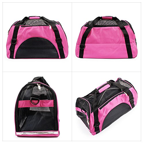 -. Feature : AIRLINE APPROVED PET CARRIER: Our 17" (L) X 7"8 (W) x 11"4 (H) FAA approved dog and cat carrier easily fits under airplane seats of American Airlines, Delta, Jetblue & any other major airline. / EMPHASIS ON COMFORT: With mesh ventilation on the sides and top and 2 removable ultra-soft fleece pads, this soft sided pet carrier ensures total comfort for your furry friend. / SUPERIOR PET SAFETY: We've fitted our pet carriers for small dogs and cats with 2 seat belt buckles for safe car travel, safety buckle zippers, and even reflective strips for night visibility. / SWATERPROOF MATERIAL and REMOVABLE BOTTOM CUSHION: This pet carrier is made of durable, lightweight, waterproof nylon and mesh materials. It comes with a removable pad for comfort and easy cleaning. / WARRANTY: Pet Carrier comes with a 12 months warranty.