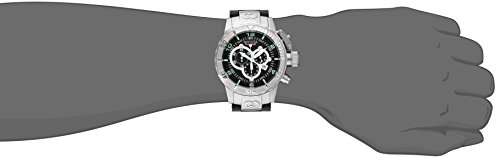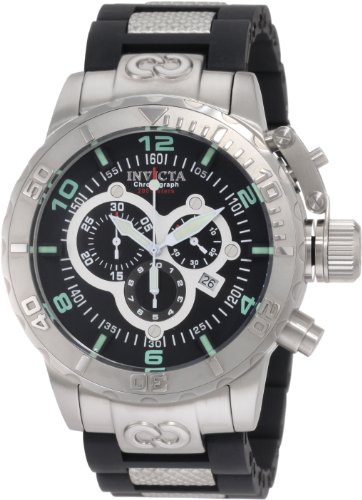 -. Feature : Swiss Quartz movement / Mineral crystal; Brushed and polished stainless steel case; Black polyurethane strap with textured stainless steel center links / Chronograph functions with 60 second, 30 minute and 1/10th of a second subdials; Date function / Black dial with white hands, green hour markers and arabic numerals; Luminous; Unidirectional bezel; Secured screw-down protective cap on crown / Water resistant to 660 feet (200 M): suitable for recreational scuba diving