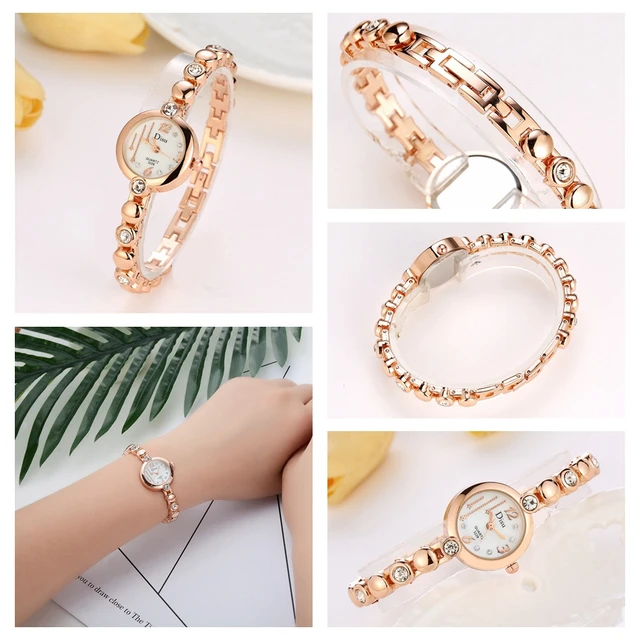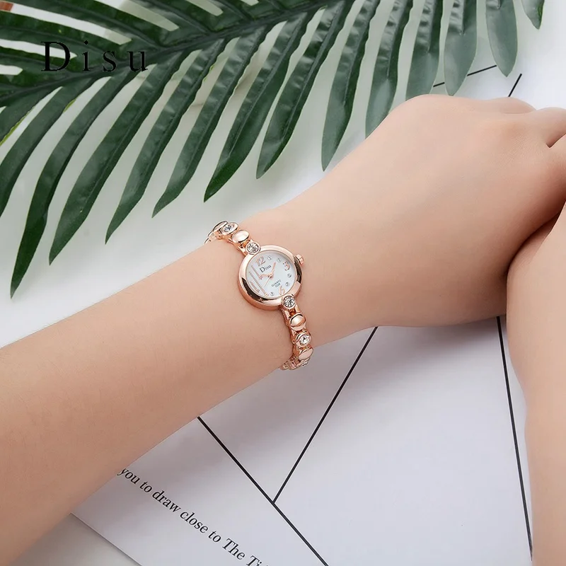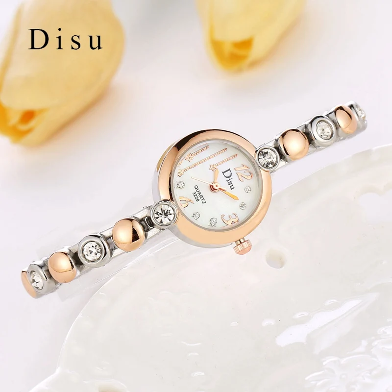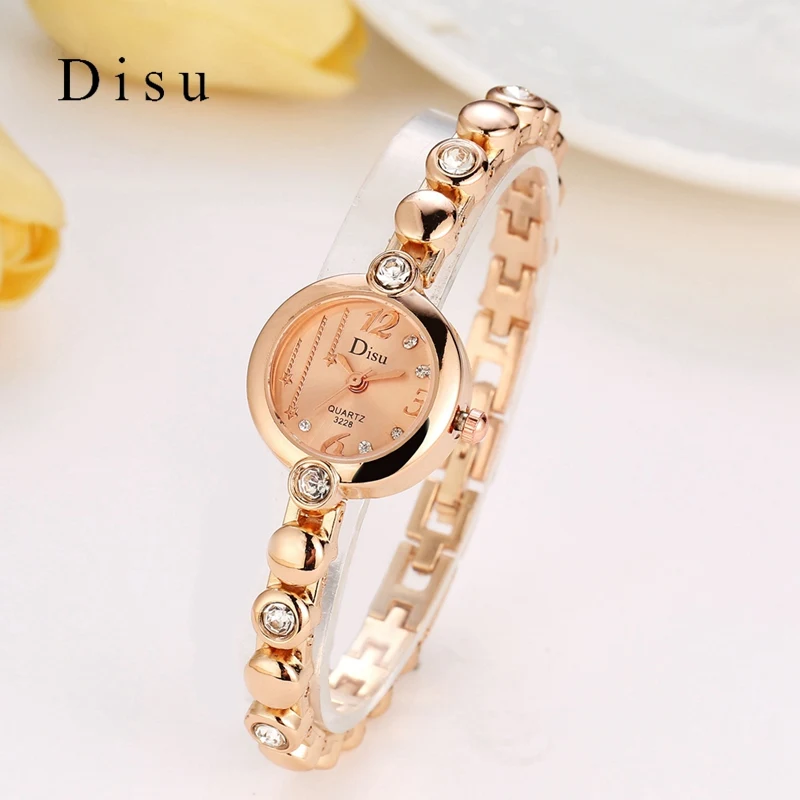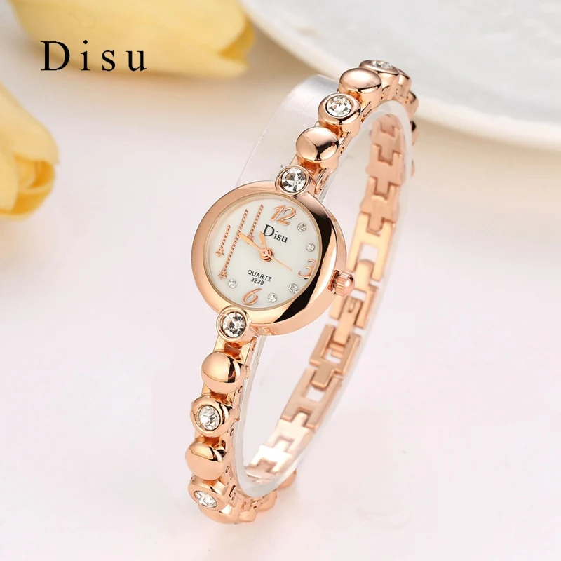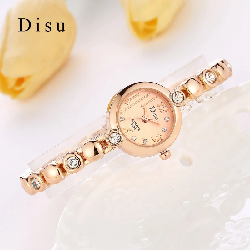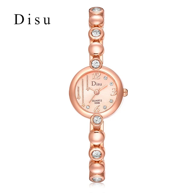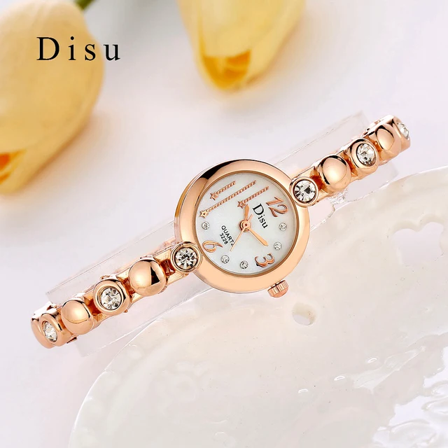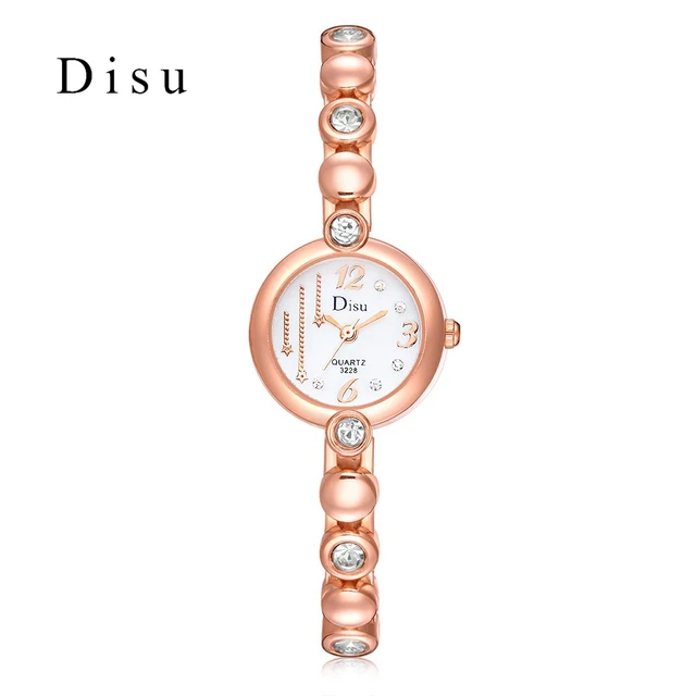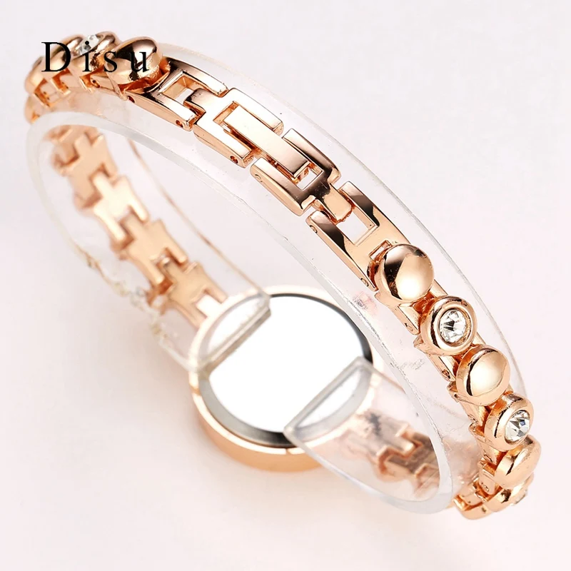 | [해외] Disu 브랜드 여성 손목 시계 패션 팔찌 시계 럭셔리 로즈 골드 크리스탈 드레스 시계 시계 스포츠 쿼츠 시계 |