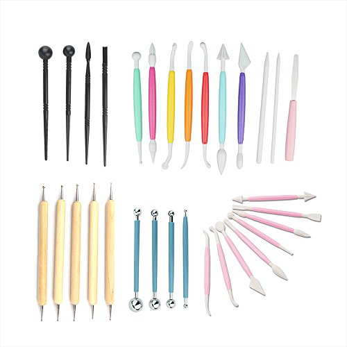 Asayu 30 Pcs Modeling Tools Fondant Tools Cake Decor Supplies, Stylus Pottery Sculpting Modeling Tools Fondant Tools