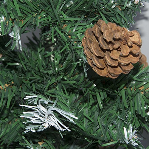 60 pieces of pine tips, and 4 pine cones that makes this tree look naturally beautiful.