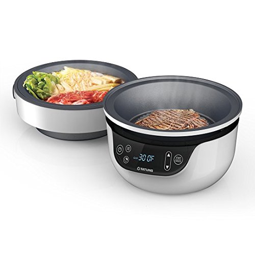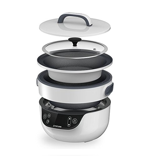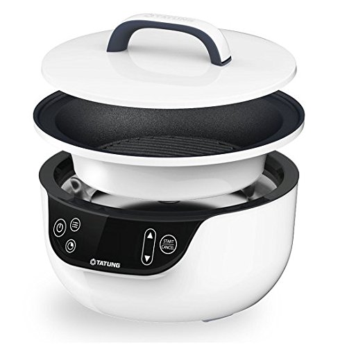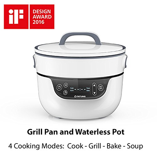 The Tatung fusion cooker combines a skillet and a waterless pot into one appliance. It allows individuals to prepare complete meals with a minimum of equipment and effort. A three-liter waterless pot cooks food without the use of additional water; natural juices from the cooking foods steam heating. A nine inch skillet allows for frying, grilling, sauteing and more. An airtight lid fits tightly, helping to trap moisture that cooks the foods more quickly. An additional glass lid provided with the cooker allows the user to keep an eye on foods cooking when using the waterless pot; perfect for making shabu shabu/hot pot. Both the pot and grill are lined with an advanced non-stick coating to prevent foods from sticking to the surfaces as they cook. An added benefit of the fusion cooker is that it is energy-efficient and takes up very little counter space when in use. Easy user controls and built-in safety features will make it a great addition to the home kitchen. 2016 if design award.Feature