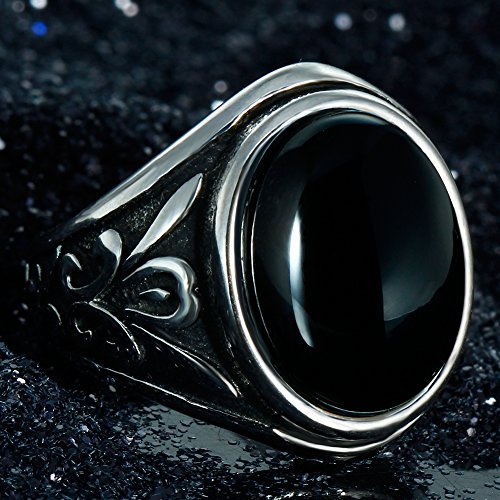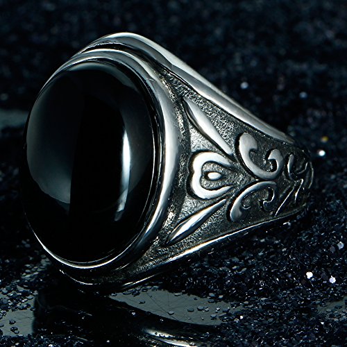 -. Title : BOHO Jewelry Mens Vintage Stainless Steel Onyx Ring,Black Silver