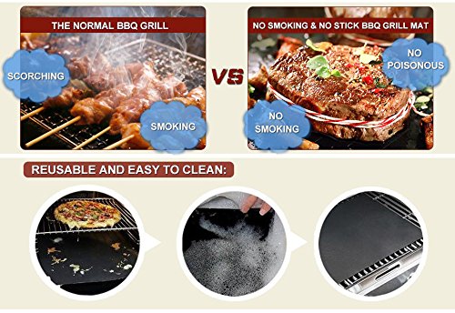 - 100% NON-STICK - means you can grill without grease and mats are reusable for years! Non-stick BBQ grill mat prevent even the smallest morsels from falling through the grates. Keep your grill looking brand-new and no more clean-up of your dirty grill!