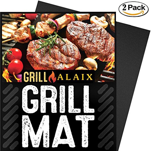 ALAIX 100% Non-stick BBQ Grill & Baking Mats - FDA-Approved,Reusable and Easy to Clean - Works on Gas, Charcoal, Electric Grill and More - 15.75 x 13 Inch,Set Of 2