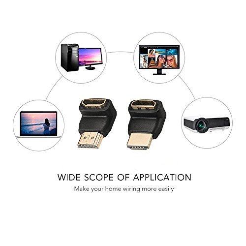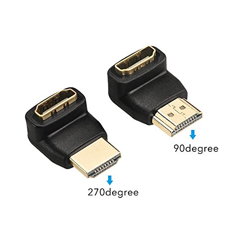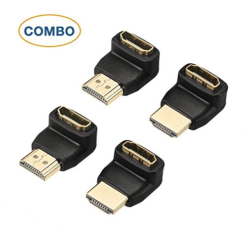 DIZA100 4-Pack HDMI Right Angle Connectors,2-Pack 90 Degree and 2-Pack 270 Degree HDMI Male to Female Adapters