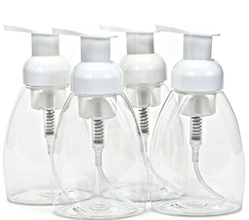 - 4 - 8.5 oz, Oval, Clear, Plastic Foaming Soap Bottles, with White Dispenser Pumps