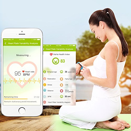 -. Title : HeHa Bluetooth Waterproof Fit Wristband Fitness Tracker Watch iPhone Compatible with Heart Rate Monitor Activity Calories Burned Counter Sleep Monitor Pedometer Watch