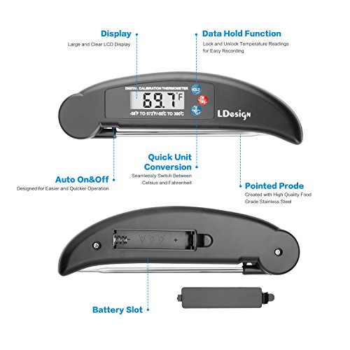 - LDesign Digital Food Thermometer, with IP55 Waterproof, pefect for Perfect for indoor & outdoor cooking, grilling, BBQ, baby milk, candy making, bath water and so on