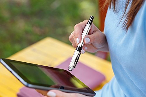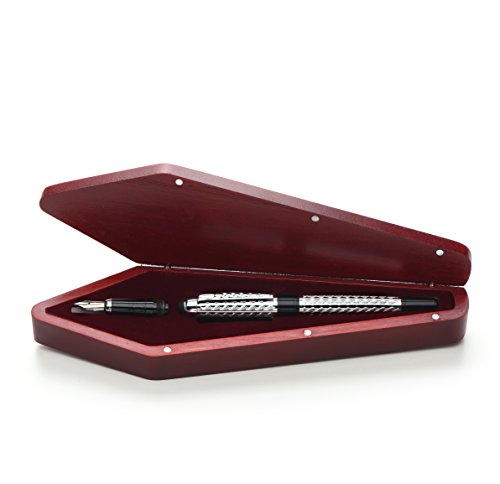 FREE UNIQUE GIFTS ADDED: Each KING NIB FOUNTAIN PEN SET includes 1 stylus suitable for any touch screen electronic such as a Tablet, Smartphone, computer, laptop, or others, an explanation page, cleaning duster, notebook, and greeting card in a classy, one-of-a-kind sturdy red wood nib-shaped case that has a stretched diamond design of a fountain pen and the gold King Nib crown logo; this complete set makes a perfect gift for anyone who loves classy fountain pens;