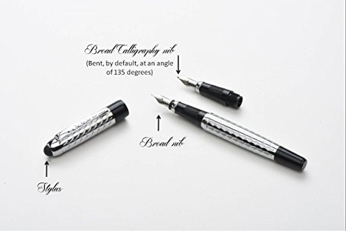 TWO NIBS INCLUDED: The KING NIB FOUNTAIN PEN SET comes with the Standard Broad Fountain Writing Nib plus a flexible Broad Calligraphy Nib designed for cursive and italic writing; note the calligraphy nib has a tilted-designed angle of 135 degrees to write fancy letters with ease without adding stress on your hand or wrist; the nibs are easily replaceable because each comes with a connector, so you do not need to mess with the nib itself;