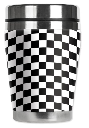 Mugzie Checkered Flag "Mini" Travel Mug with Insulated Wetsuit Cover, 12 oz, Black