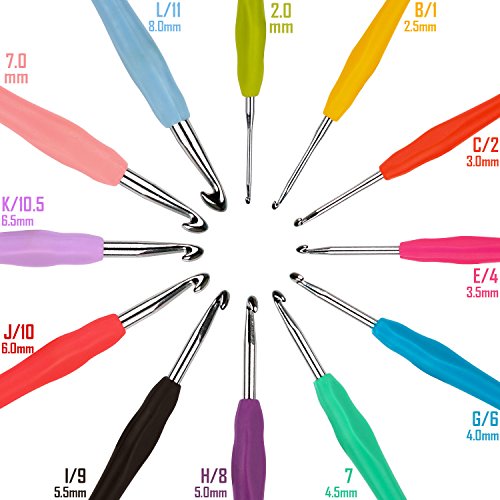 - EASY TO USE! – Every hook is color coded and printed with size numbers, so you’ll never be confused which hook works best for which loop. Included are 12 versatile hook sizes from B/1(2mm) to L/11(8mm), so you’re prepared for any patterns!
