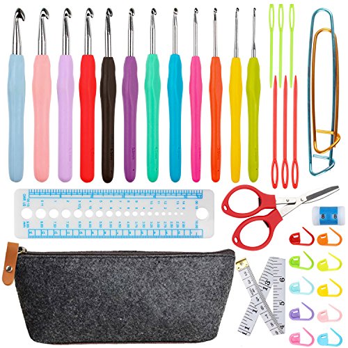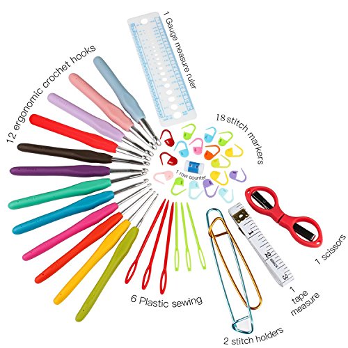 - Complete crochet hook set-- ergonomic crochet hooks, stitch holders, scissor, measure ruler etc practical tools in one portable bag, which is easy to organize, carry to anywhere.