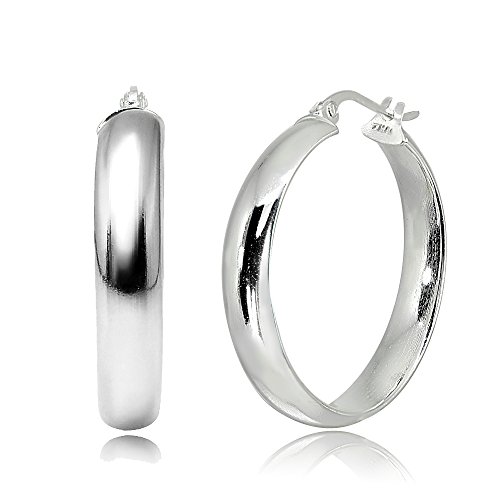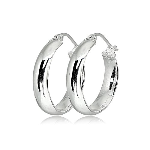 High polished earrings display half round hoops with click-top closures. Choose the diameter size that suits your style. The hoops are crafted of sterling silver and are nickel free.