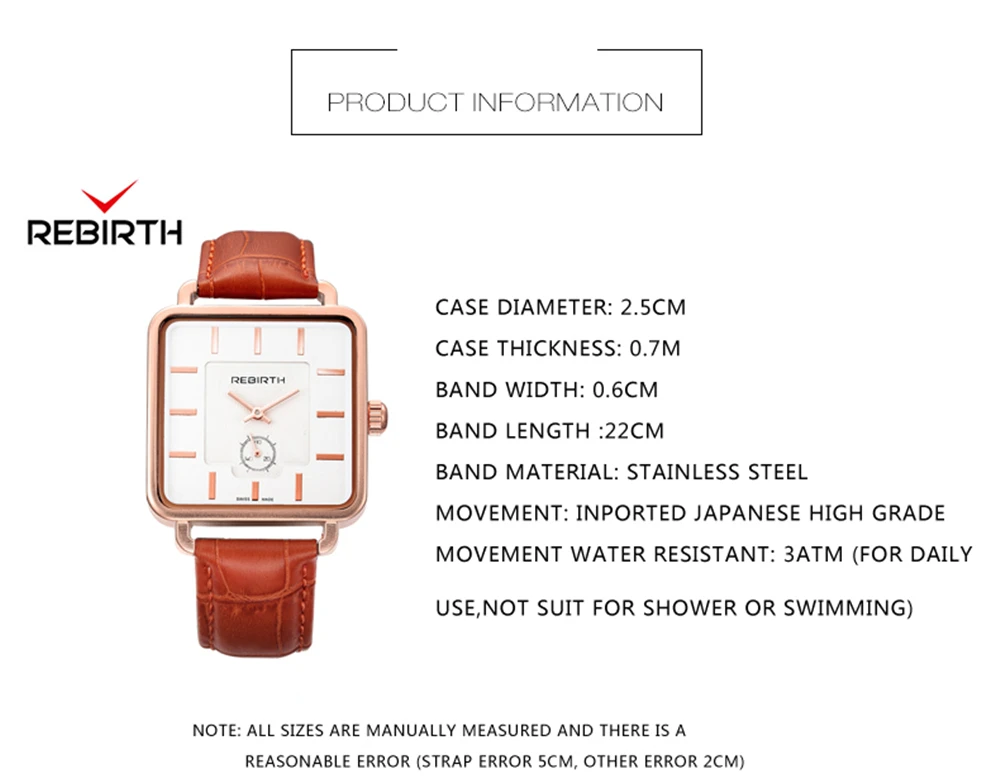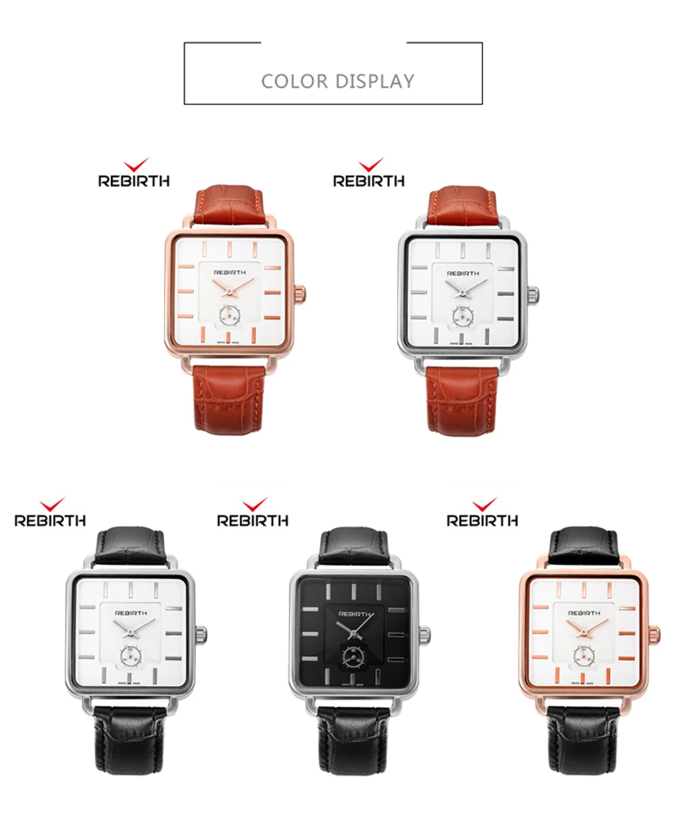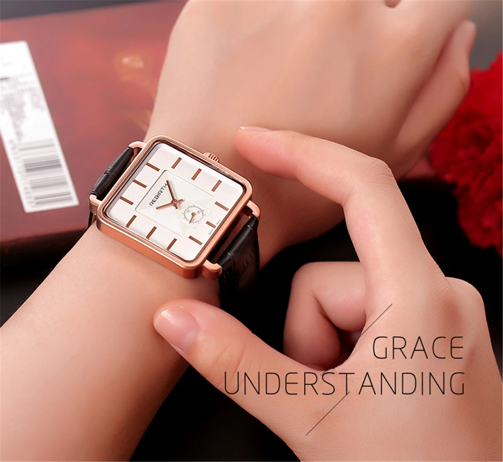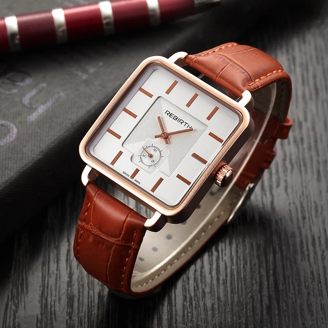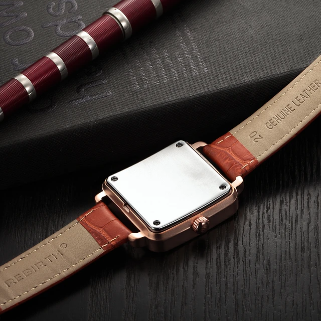 | [해외] REBIRTH 여성 광장 다이얼 로즈 골드 팔찌 팔찌 시계 여성 아날로그 쿼트 숙녀 패션 드레스 시계 여자 |