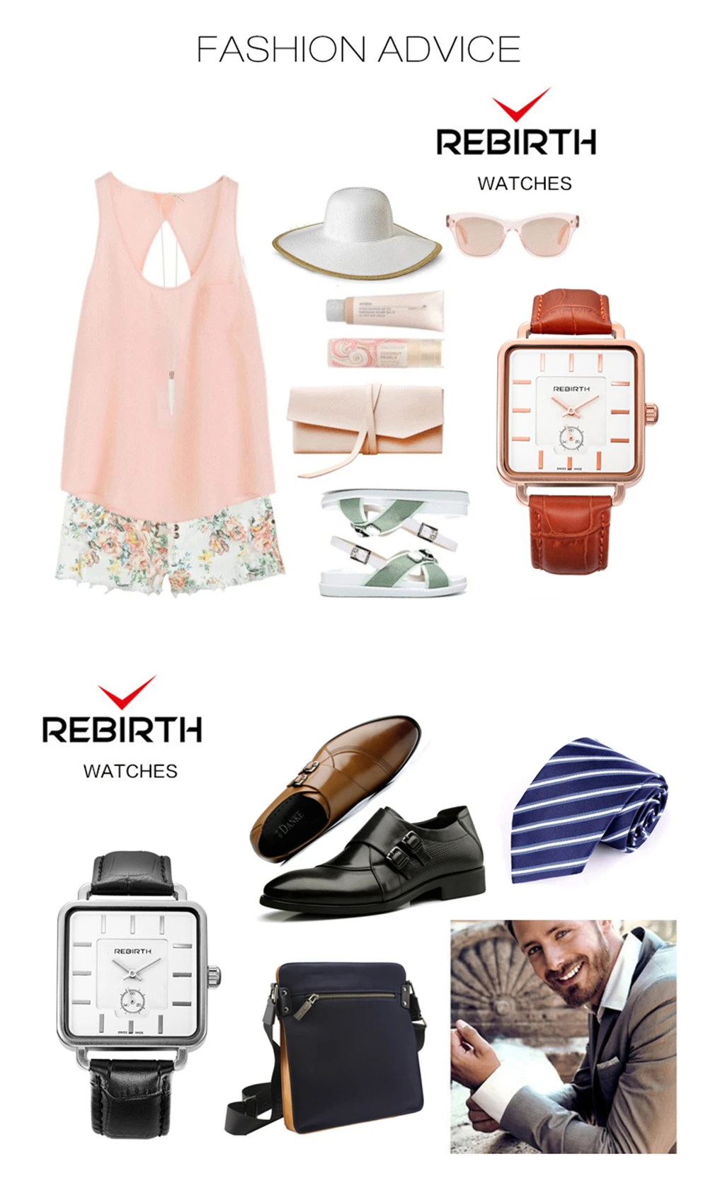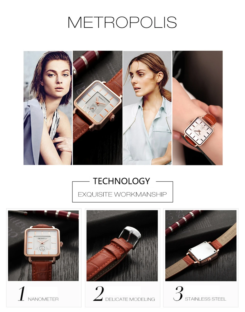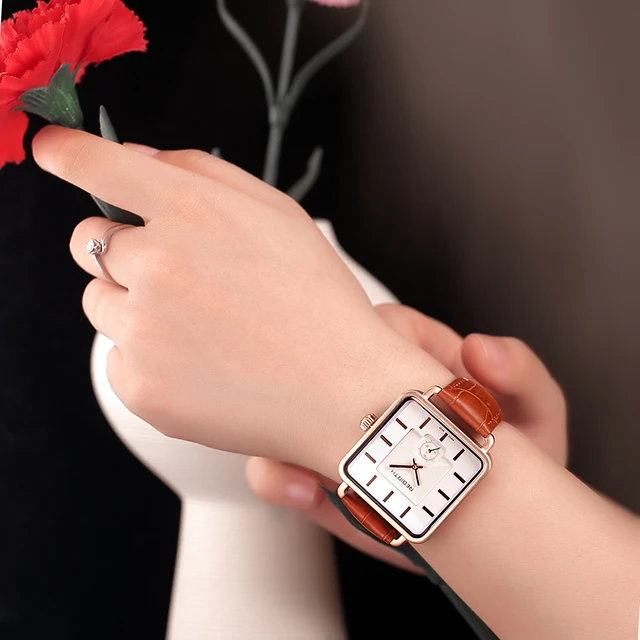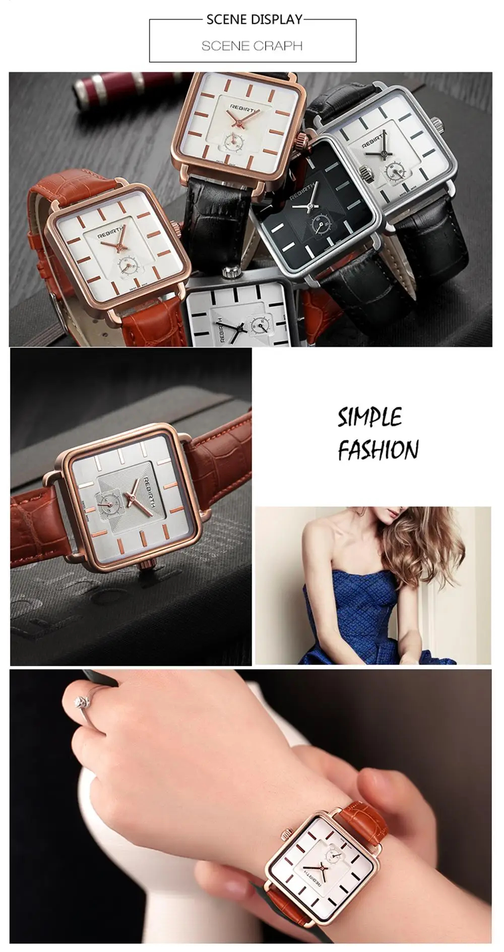 | [해외] REBIRTH 여성 광장 다이얼 로즈 골드 팔찌 팔찌 시계 여성 아날로그 쿼트 숙녀 패션 드레스 시계 여자 |