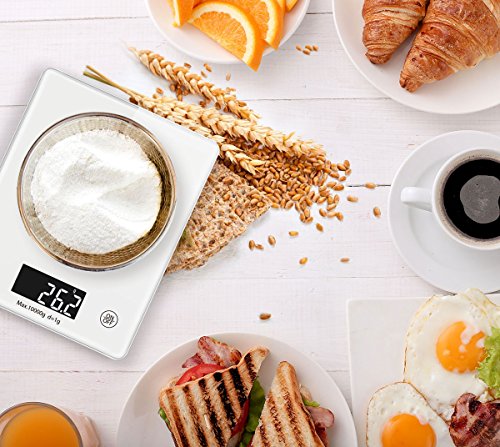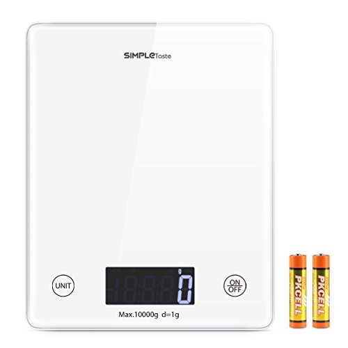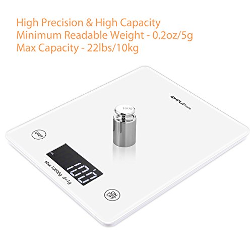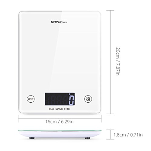 SimpleTaste Digital Kitchen Scale Multifunction Cooking and Baking Scale, 22lb 10kg, Tempered Glass, Backlit LCD Screen, White
