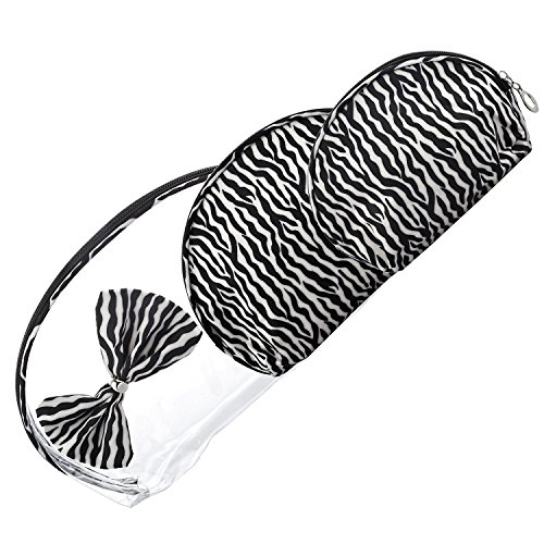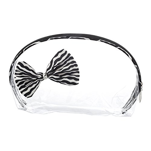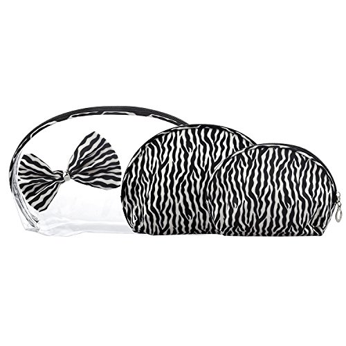 Lux Accessories Black and White Zebra Print Bow See Through Cosmetic Bag Set 3PC