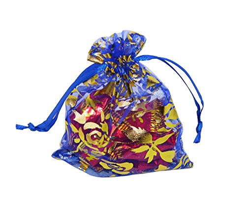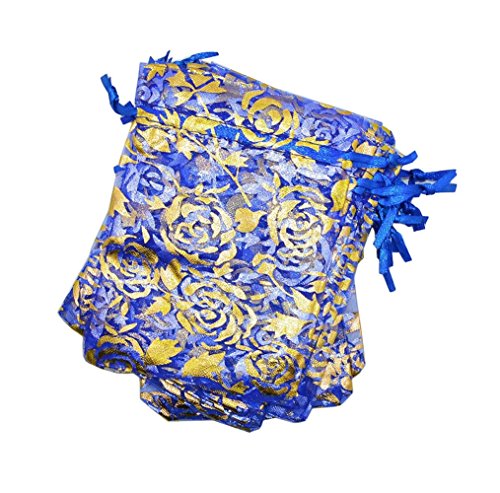 KUPOO Pack of 50PCS 3.5X4.75 Inch Drawstring Organza Bag Jewelry Favor Pouch with Gold Rose Print for Gift,Wedding,Party,Festival (dark blue)