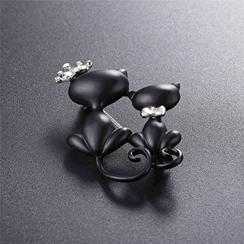 -. Title : Lovely Crown Cat Brooch & Pin Black Gun Plated Double Kittens Cute Brooches Accessories for Women