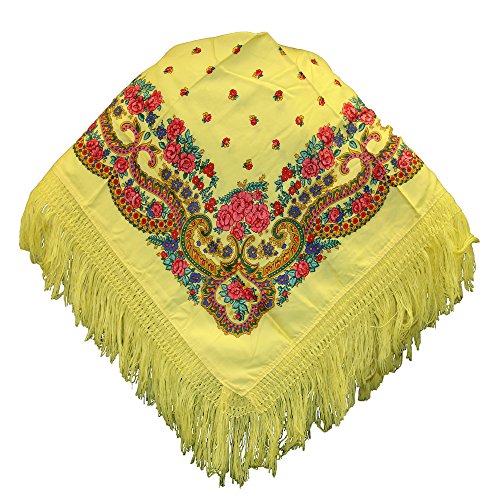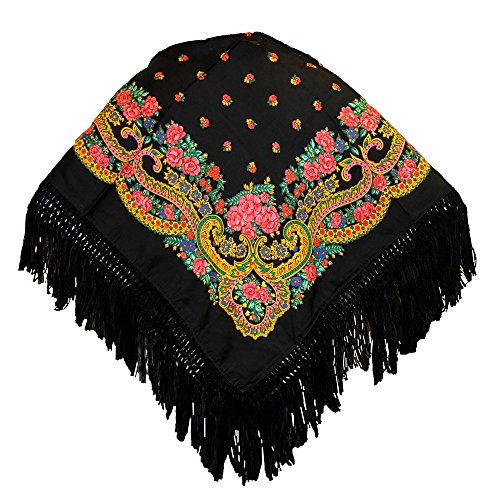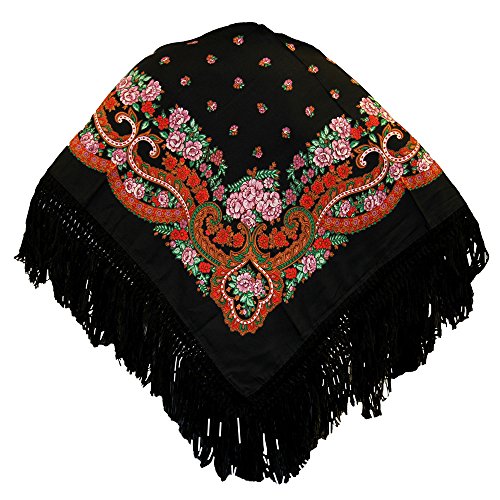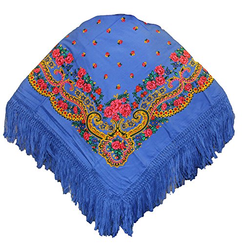 Binding : Apparel Product Description Folk head scarves or shawls with delicate floral folk patterns and bohemian style. This traditional Portuguese scarf is now high-fashion. To cut a long story short, in the Viana de Castelo region (north of Portugal), this colorful scarf is part of the traditional costumes and is worn by women around the shoulders and on the head during village celebrations. From the 19th century, for generations, the teaching of handicrafts was entrusted to the young girls who embroidered to conceive, in addition to the trousseau, their own traditional Viana Costume (Traje a Vianesa). Because of the extraordinary beauty and delicacy of its embroidery, and all that it represents in terms of artistic creativity and the work that underlies, the Viana Costumes are surely one of the most emblematic costumes of Portugal. 0