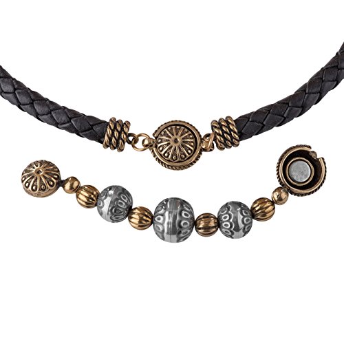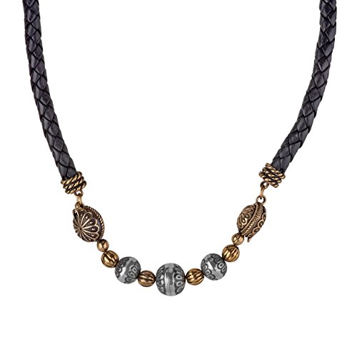 This necklace is a mixed metal treat! Black braided leather creates the backdrop for this unique necklace. Alternating sterling silver native pearls and brass beads make for a fun style.