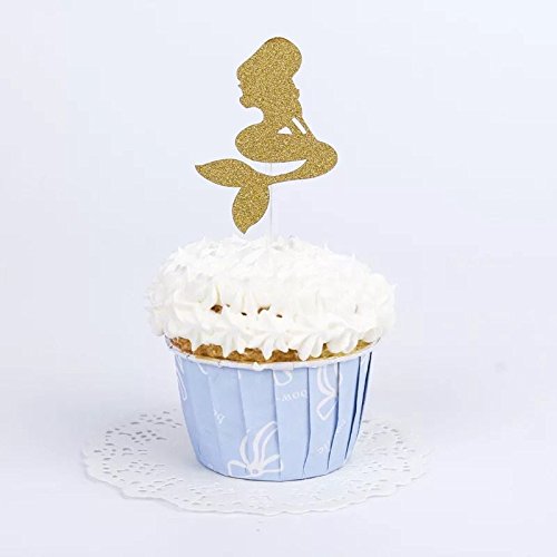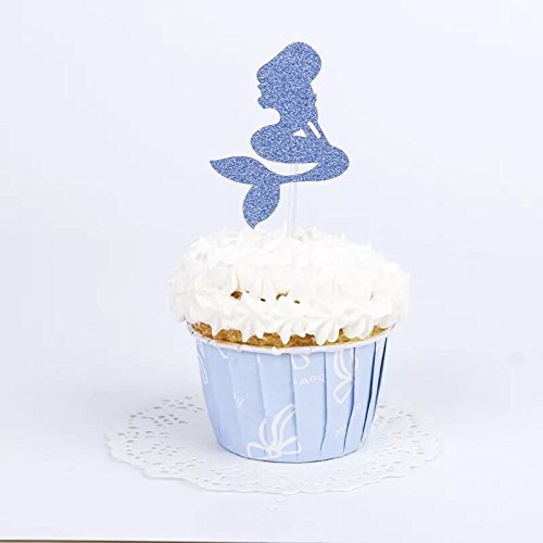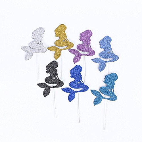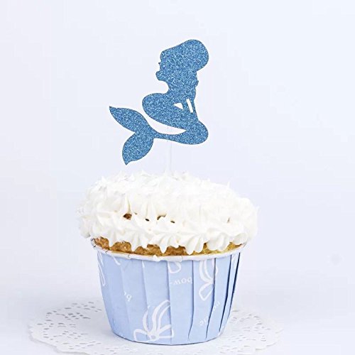 Astra Gourmet 20 PCS Multi-colored Mermaid Glitter Cupcake Topper Cake Picks Decoration for Baby Shower Birthday Party Favors