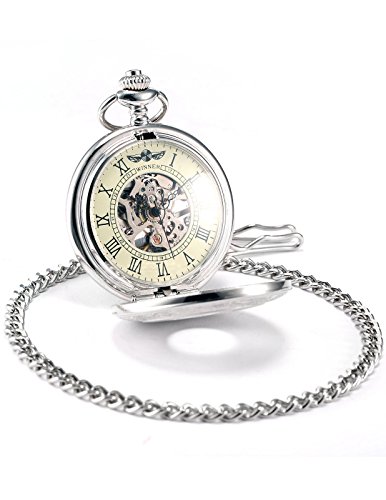 -. Title : Mix&Rock Silver Engraving Case Vintage Roman Mechanical Pocket Watch With Removable Chain