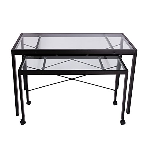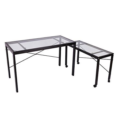 -. Binding : Kitchen -. Brand : HOMCOM -. Color : Clear -. Department : unisex-adult -. EAN : 0842525105514 -. Feature : ✔ CONTEMPORARY STYLE: Set includes both a large table and a small table with a contemporary style that mixes glass and metal to add elegance to your home. / ✔ VERSATILE: The desks can be combined and arranged in a wide-variety of ways. While the larger table is stationary, the smaller one is on wheels, allowing it to move easily and even fit under the larger table. / ✔ DURABLE MATERIALS: Made from metal and tempered glass, the HomCom 47" Glass 2 Piece Nesting Table Set is strong and durable by design. / ✔ COMPACT DESIGN: Both tables have a rectangular shape structure and their nesting feature allows them to be placed underneath each other to free up space. / ✔ USEFUL IN A VARIETY OF WAYS: Our nesting tables can be used as a workstation desk or as a console table for decoration. The possibilities for use are endless. -. Label : HomCom -. Manufacturer : HomCom -. Model : 836-023 -. MPN : 836-023 -. NumberOfItems : 2 -. PackageQuantity : 1 -. PartNumber : 836-023 -. ProductGroup : Home -. ProductTypeName : HOME_FURNITURE_AND_DECOR -. Publisher : HomCom -. Studio : HomCom -. Title : HomCom 47” Contemporary Style Glass 2 Piece Nesting Table Set - Transparent/Black -. UPC : 842525105514
