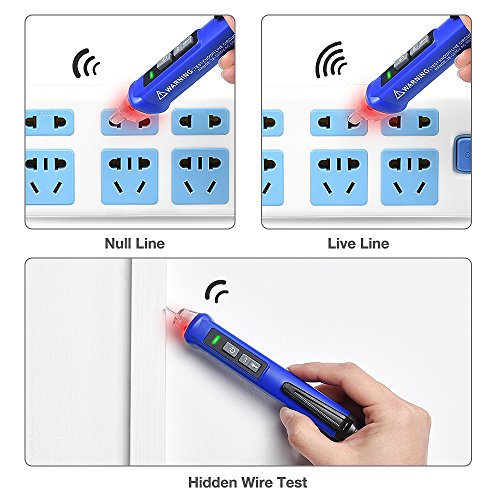 AC Voltage Detector- Distinguish the live and null wire through different frequency alarm sound AND led indicator; Voltage detection range 12-1000V AC