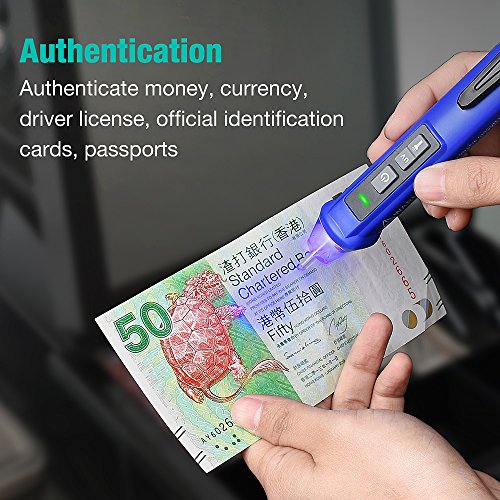 UV Blacklight Function: Substitute for the UV blacklight flashlight, make this electrical tester be able to authenticate currency, driver license, official identification cards, passports, money