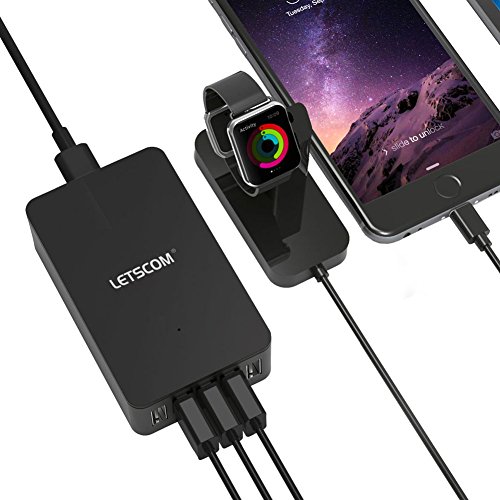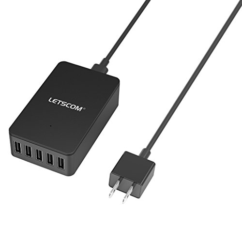 LETSCOM CSE Multi Port USB Charger - 40W / 8A 5-Port Wall Charger, Desktop Hub Charging Station, Auto-Detect Travel Power Adapter - Black