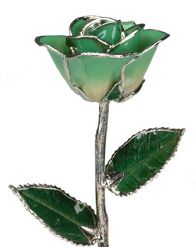 Two Tone Light Green Laquered Platinum Dipped Long Stem Genuine Rose In Red Gift Box