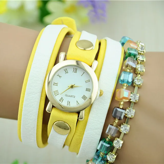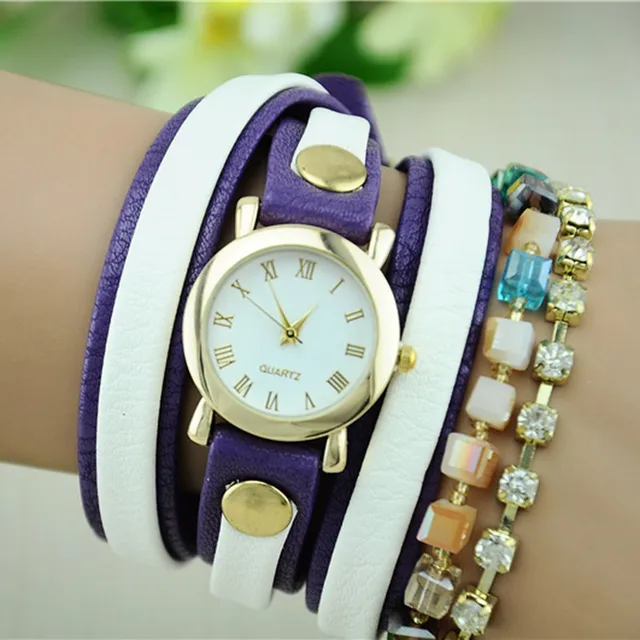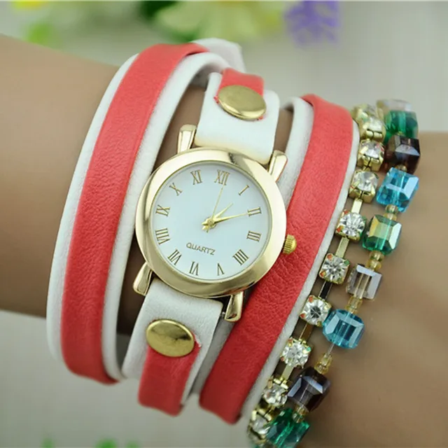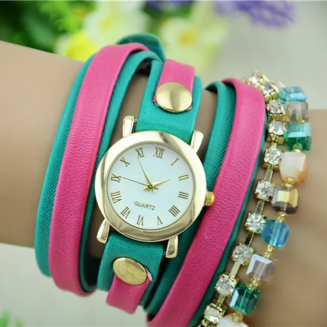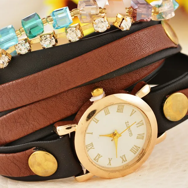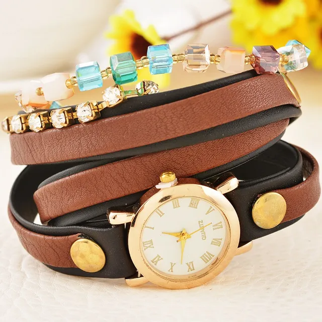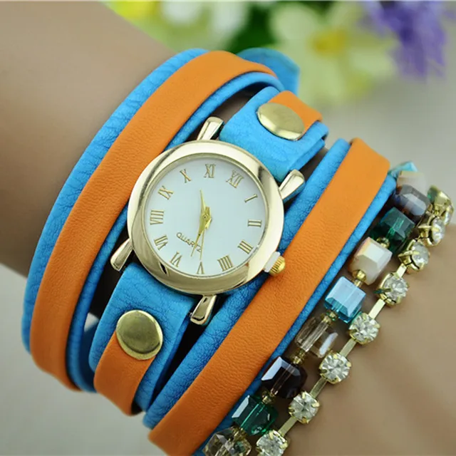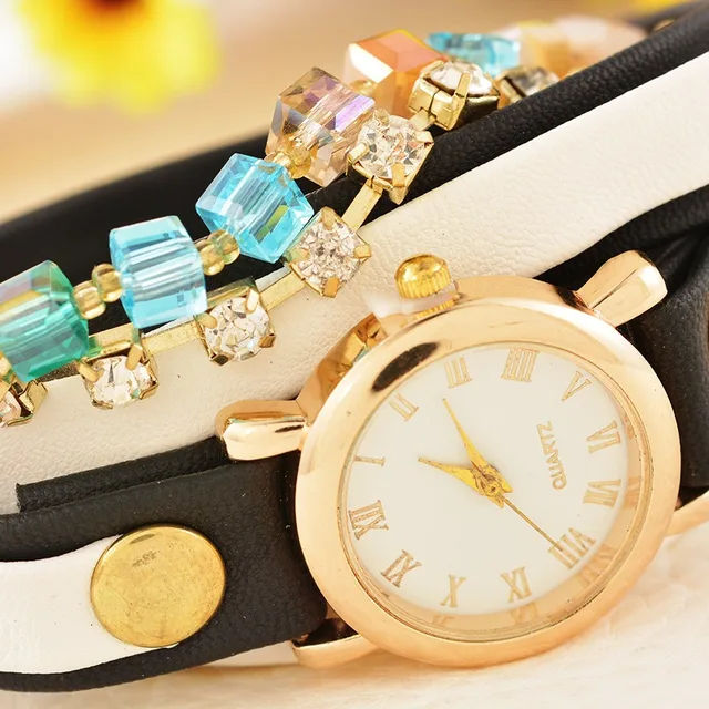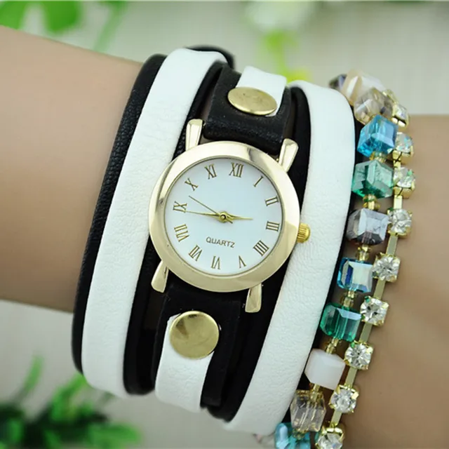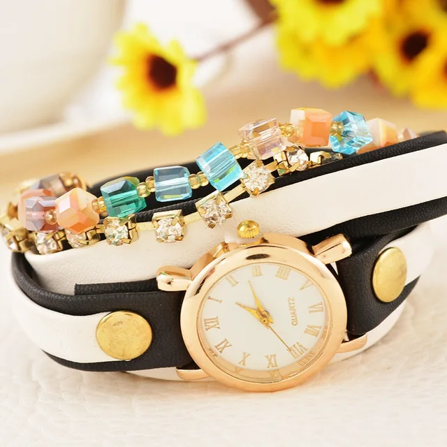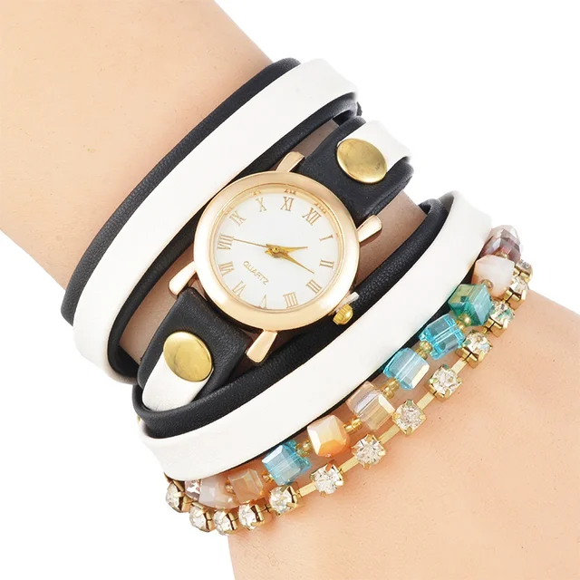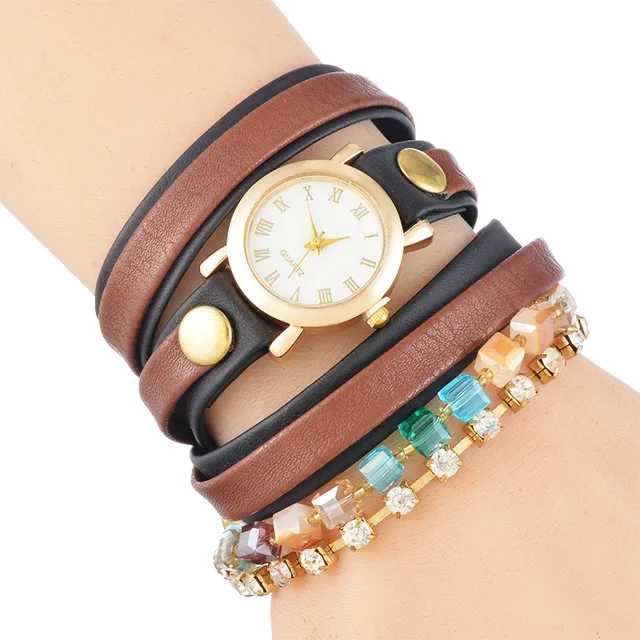 | [해외] Mjartoria 팔찌 시계 여성 캐주얼 석영 시계 크리스탈 비즈 pu 가죽 여성 드레스 시계 패션 손목 시계 |
