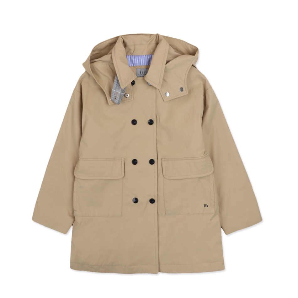 세련된 베이지 컬러의 더블 돗도스냅 여밈이 스포티한 분위기를 더해주는 후드 탈부착 버버리 코트 아이템입니다.