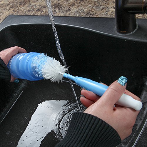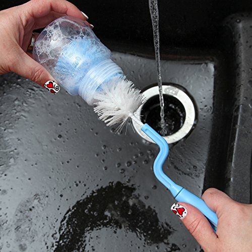 SPINNING ANGLED DESIGN - Our bottle cleaning brush has a unique angled design that hugs the sides of the bottle, and spins on its handle to move freely inside of the container.