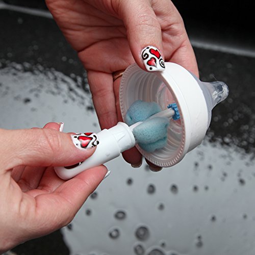 MINI FOAM SPONGE & RUBBER TIP - A separate mini cleaner stored in the handle has a rubberized tip that gets into tiny spaces, like the to nipple of a bottle. And the foam sponge additionally cleans around the bottle necks.