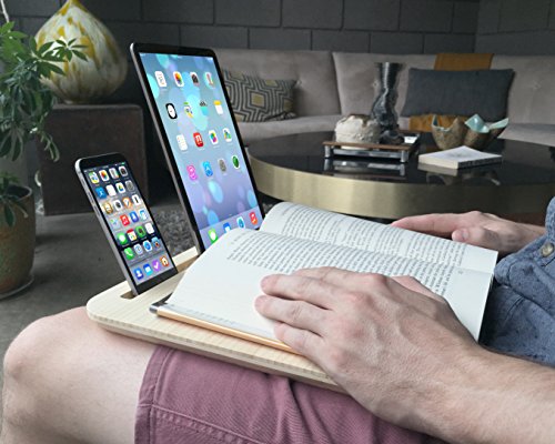 -. Feature : How To Use: Tab was made to rest comfortably on your lap and can be set on your bed, sofa, desk, or table. / Display Docks: Secure, viewing dock for your iPhone (iPhone 5/6/6s/7 and Plus Models, Samsung Galaxy, Nexus, HTC, and Blackberry), iPad Mini (All Generations), iPad Air (1, 2, and 3), iPad Pro (9.7 and 12.9) and other tablets including Surface Pro / Material: Natural, Hand-Finished Bamboo and Durable Acrylic WhiteBoard / Made in the USA by iSkelter